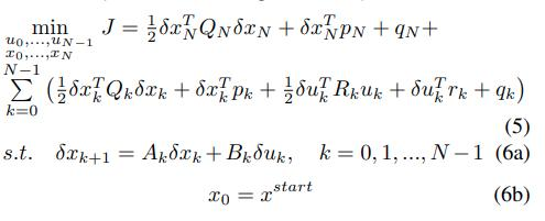 通过求解这个标准LQR问题可以求得每次“扰动”的delta u并通过每一步进行backward更新系统状态。